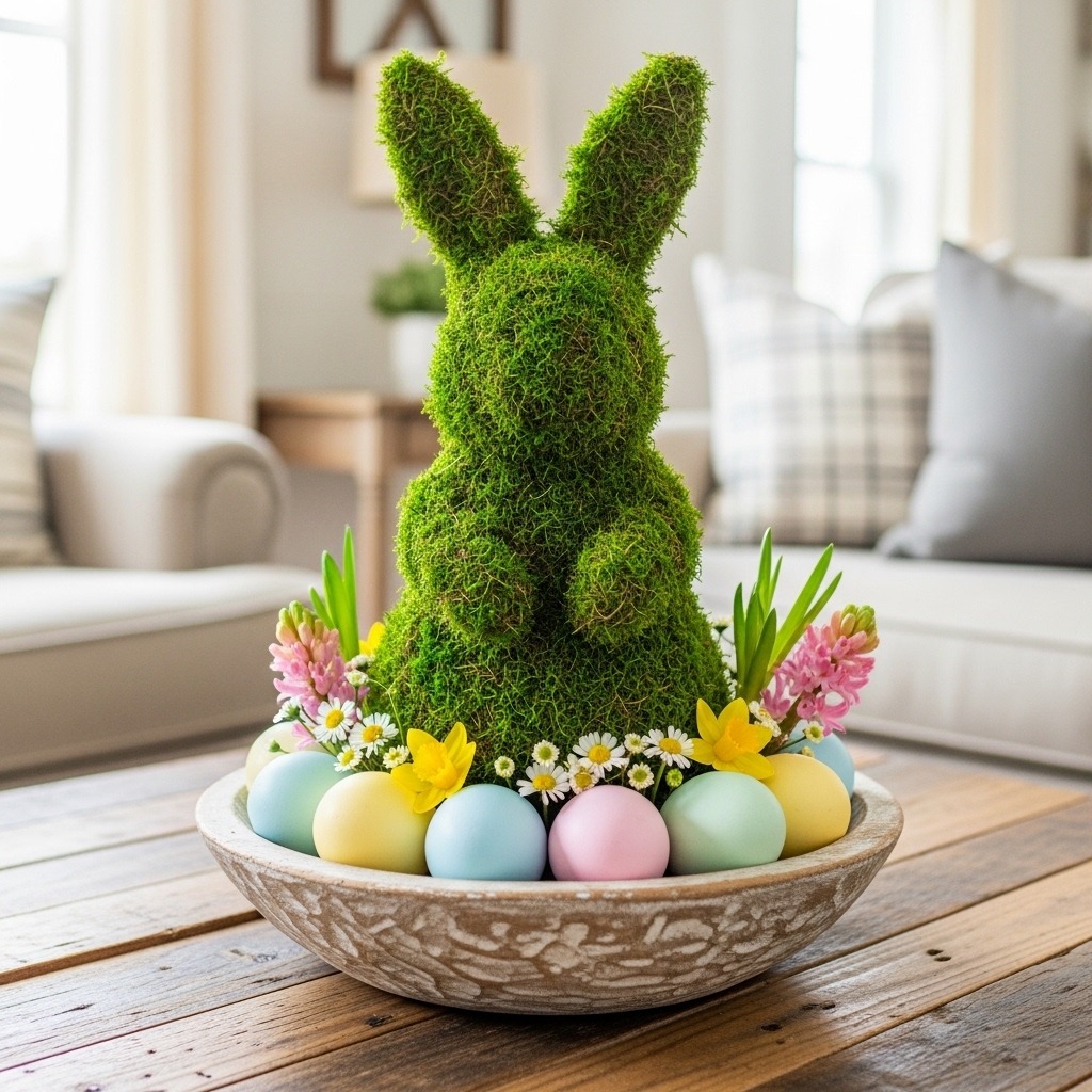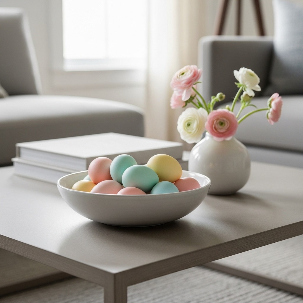 Decorating your living room for Easter doesn’t have to be complicated or expensive. Simple decor choices using soft colors, natural