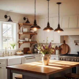 Farmhouse pendant lights remain a favorite for good reason—they bring warmth and charm into the kitchen.
