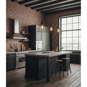 Industrial cage pendant lights offer a bold, edgy look that works especially well in modern and loft-style kitchens.