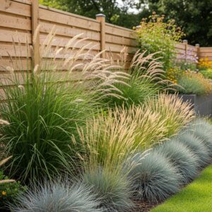 Pair grasses with flowering plants or low shrubs to create a layered look that feels natural and inviting.