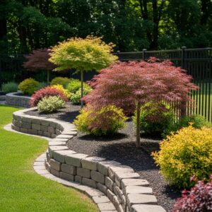 Trees like Japanese maple or dwarf magnolia add height and elegance, while shrubs provide fullness and seasonal color.