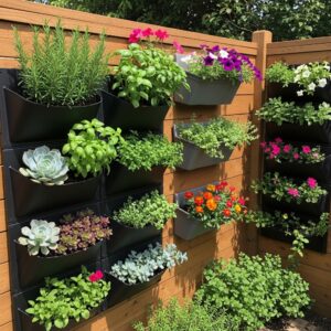 Vertical gardening is perfect for tight spaces. Use hanging planters or wall-mounted pockets to grow flowers, herbs, or succulents along your fence.
