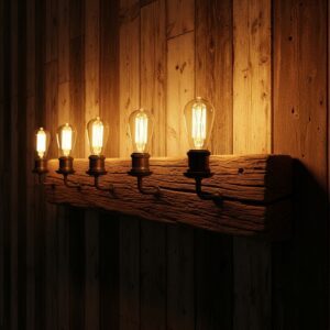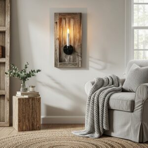 For a statement piece that captures the essence of rustic, a reclaimed wood beam wall sconce offers both texture and history.