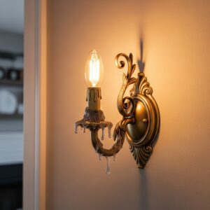 These fixtures mimic the shape of candle holders with elongated arms and faux wax accents, giving a historical vibe without the maintenance of real candles.