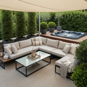 Adding amenities like a hot tub, outdoor fireplace, or retractable canopy enhances the feeling of sophistication.