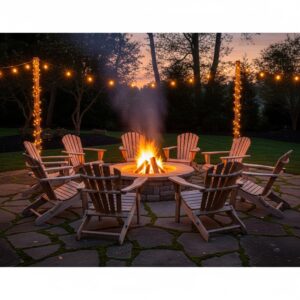Surround the pit with comfortable seating like Adirondack chairs or sectional sofas for the perfect evening retreat.