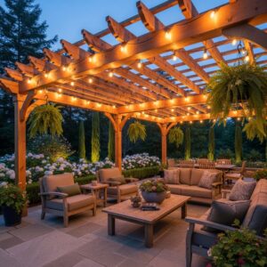 A pergola provides shade while still allowing light and air to flow through, making it a stylish and functional addition to your patio.
