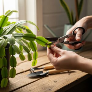 Trim your Christmas cactus in early spring by pinching off a few segments from each stem.