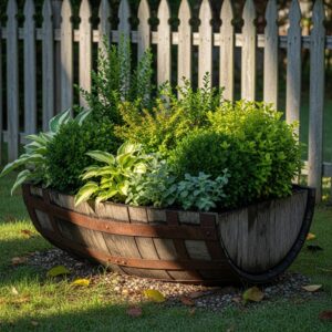 3. Wooden Barrel Planter