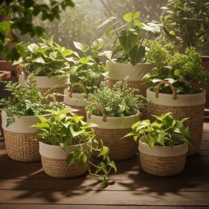 Perfect for shaded garden spots or sunrooms, woven baskets provide a cozy, boho feel.
