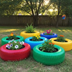 9. Recycled Tire Planters