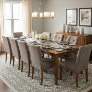 Designing a dining room for eight people requires balance — enough space for everyone to sit comfortably while maintaining style, function, and flow.