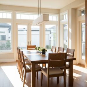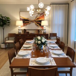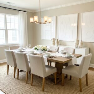 Enhance your dining area with balanced wall decor — framed prints, mirrors, or textured panels.
