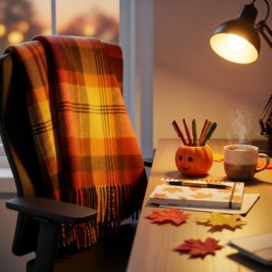 Whether it’s a pumpkin on your desk or cozy lighting, each detail can help you embrace the autumn spirit while staying productive.