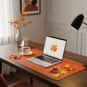 Switch out your plain desk mat for one in rich fall colors like burnt orange, mustard yellow, or deep burgundy.