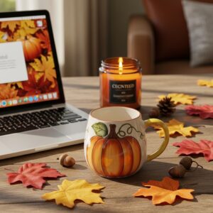 A pumpkin-shaped mug or one with fall quotes adds personality to your workspace while giving you seasonal cheer with every sip.
