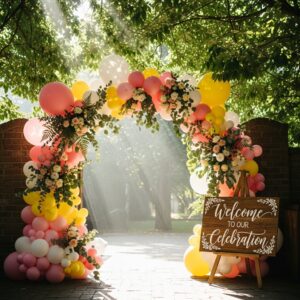 A floral balloon arch combines fun and elegance effortlessly.