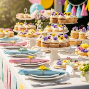 Flowers like pansies, violets, and roses are safe and beautiful, adding sophistication and charm to your dessert table.