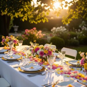 For a playful touch, sprinkle flower petals or biodegradable floral confetti on tables or the floor.