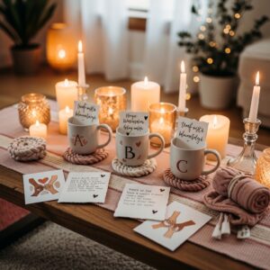 Add name tags to mugs, handwritten notes, or small friendship cards placed around the room.