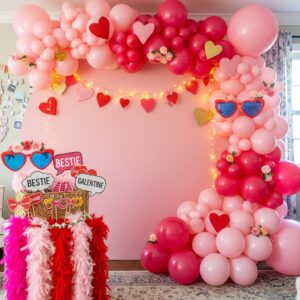 Create a small balloon garland behind your table, couch, or entryway using pink, red, and metallic balloons.