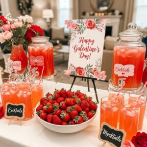 Style a small table or bar cart with themed drinks like mocktails, cocktails, or pink lemonade.