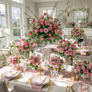 Place them on tables, shelves, or near the entryway. Greenery balances out the pink tones and adds a fresh, stylish touch.
