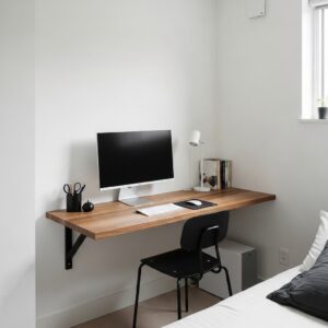 Floating desks or compact corner desks are great choices, as they free up floor space and make the room feel bigger.