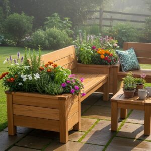 8. Garden Bench with Built-in Planters