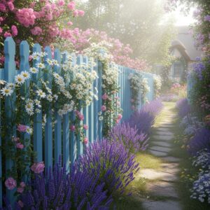 A pastel blue fence can bring a sense of calm and serenity to your outdoor space.