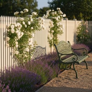 A white fence is timeless and versatile, offering a crisp, clean look that complements both traditional and modern gardens.