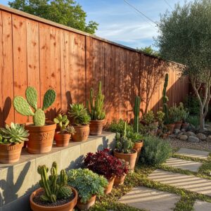 If you love Mediterranean or desert-inspired themes, a terracotta fence brings warmth and rustic charm to your garden.