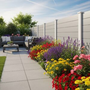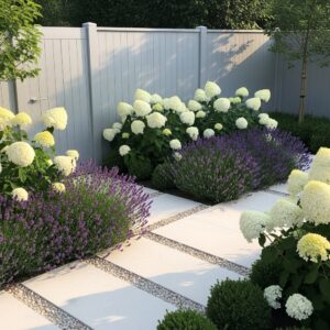 A soft grey fence can add depth without overpowering your plants, giving your garden a calm, balanced backdrop.