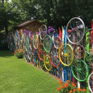 For a quirky and eco-friendly approach, consider building a fence out of upcycled materials like old skis, bed frames, or bicycle wheels.