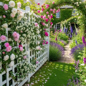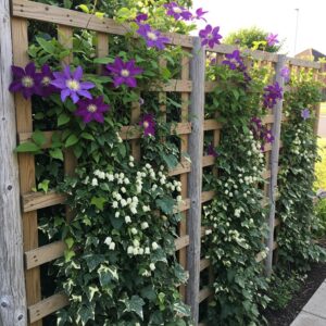 Lattice fences are especially beautiful when paired with climbing plants like roses or jasmine, creating a charming cottage-garden effect.