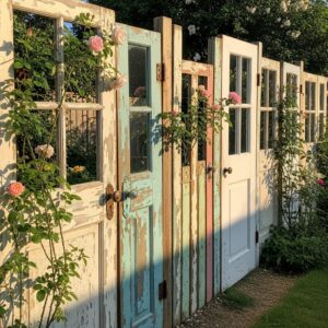 You can repurpose old doors, shutters, or planks to make a unique, shabby-chic garden fence.