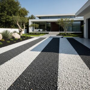 For example, you can pair white marble chips with dark gray gravel to create stripes or patterns.