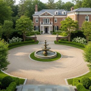 A focal point, such as a fountain, statue, or flower bed in the center, turns the driveway into a standout feature.