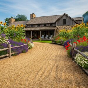 Not only does gravel provide a rustic charm, but it’s also easy to maintain and can be customized in countless ways.