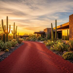 Options like red lava rock, golden gravel, or bluish slate chips give your driveway a vibrant character.