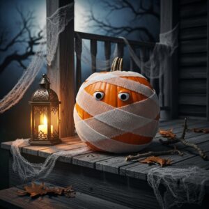 You can even place a small pumpkin next to it as a “baby mummy” to add extra cuteness and laughter to your display.