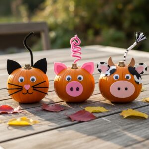 Turn your pumpkin into a funny animal hybrid, like a “pumpkin cat,” “pumpkin pig,” or “pumpkin cow.”