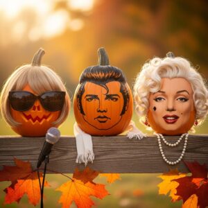 Adults love witty designs like funny quote pumpkins (“I’m Just Here for the Boos”) or celebrity look-alike pumpkins.