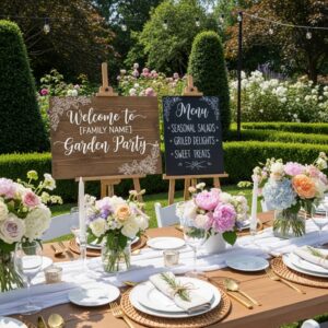 Welcome signs, menu boards, or themed quotes can be displayed on easels or hung on fences.
