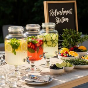 Whether it’s a lemonade bar, cocktail station, or mocktail setup, a well-decorated beverage area becomes a focal point and encourages guests to serve themselves with ease.