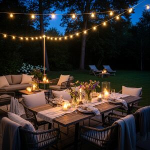 These 12 outdoor party decoration ideas focus on comfort, lighting, color, and personalization to help you create an unforgettable celebration.