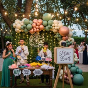 An outdoor photo booth corner is a fun and interactive decoration idea that guests love.