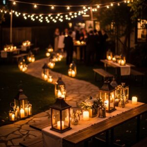 Place lanterns along pathways, around seating areas, or on tables to guide guests and add ambiance.