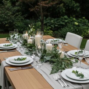 Add small decorative elements like mini vases, candles, or greenery down the center of the table.