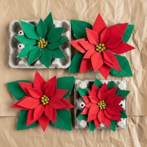 Reuse cardboard, egg cartons, or recycled paper to craft eco-friendly poinsettia flowers.